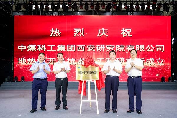 7月28日下午,中国煤炭科工集团有限公司西安研究院地热能开发技术与工程研究所揭牌成立。集团公司党委常委、副总经理范韶刚,天地科技副董事长肖宝贵,天地科技总经理张林,西安研究院党委书记、董事长王海军等出席活动并共同为西安研究院地热能开发技术与工程研究所揭牌。西安研究院党委副书记、总经理姚宁平主持揭牌仪式。