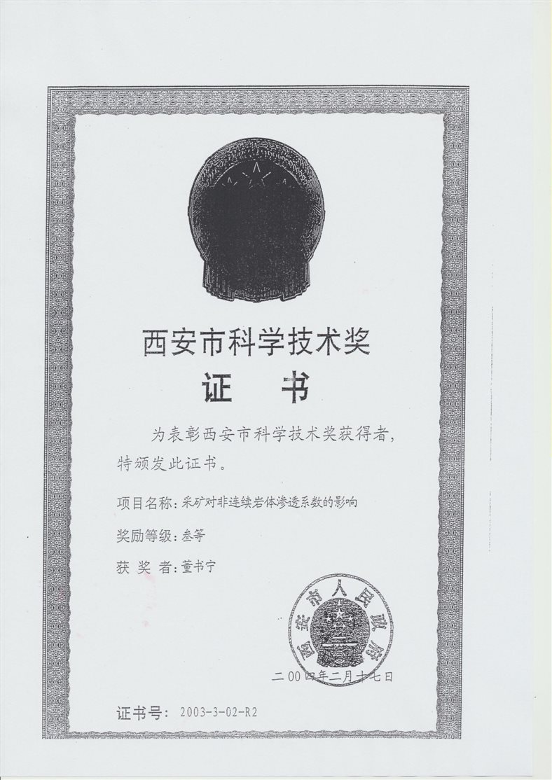 27.2004年西安市科技进步三等奖--采矿对非连续岩体渗透系数的影响,排名第2;