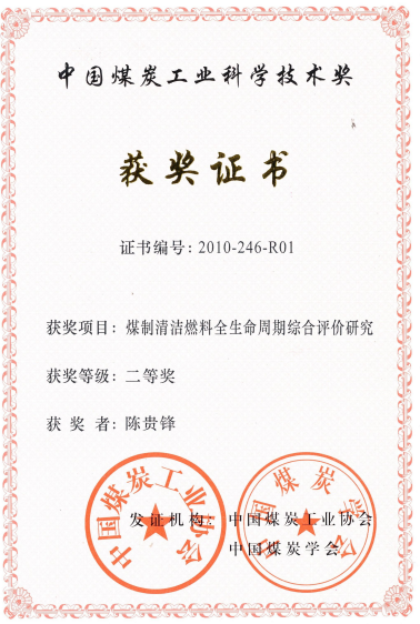 9、煤制清洁燃料全生命周期综合评价研究2012年,中国煤炭工业科学技术奖二等奖