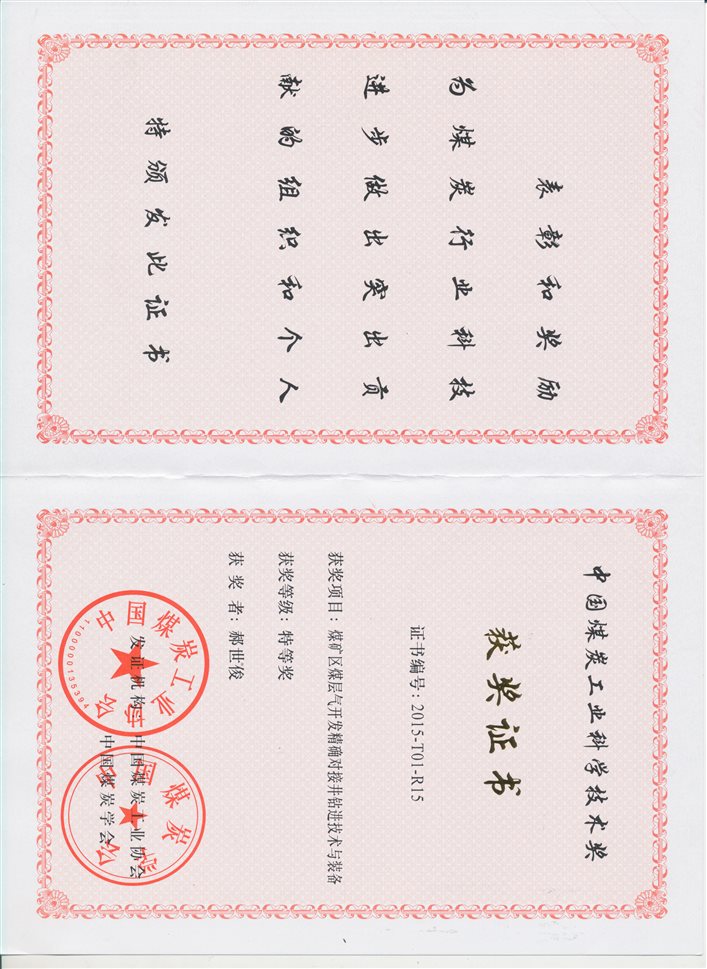 (4)煤矿区煤层气开发精确对接井钻进技术与准备,中国煤炭工业协会,中国煤炭工业协会科学技术奖,特等奖,2015年,排名第15