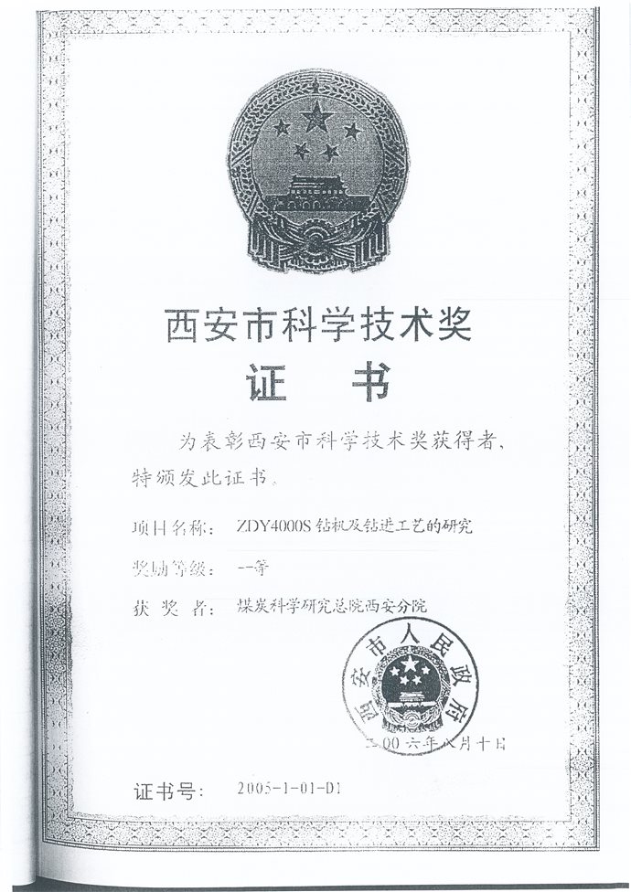 (6)ZDY4000S钻机及钻进工艺的研究,西安市,西安市科学技术奖,一等奖,2006年,排名第17