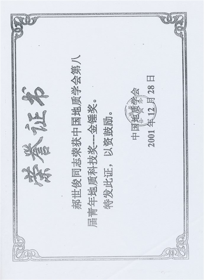 (1)2001年获得中国地质学会第八届青年地质科技奖金锤奖