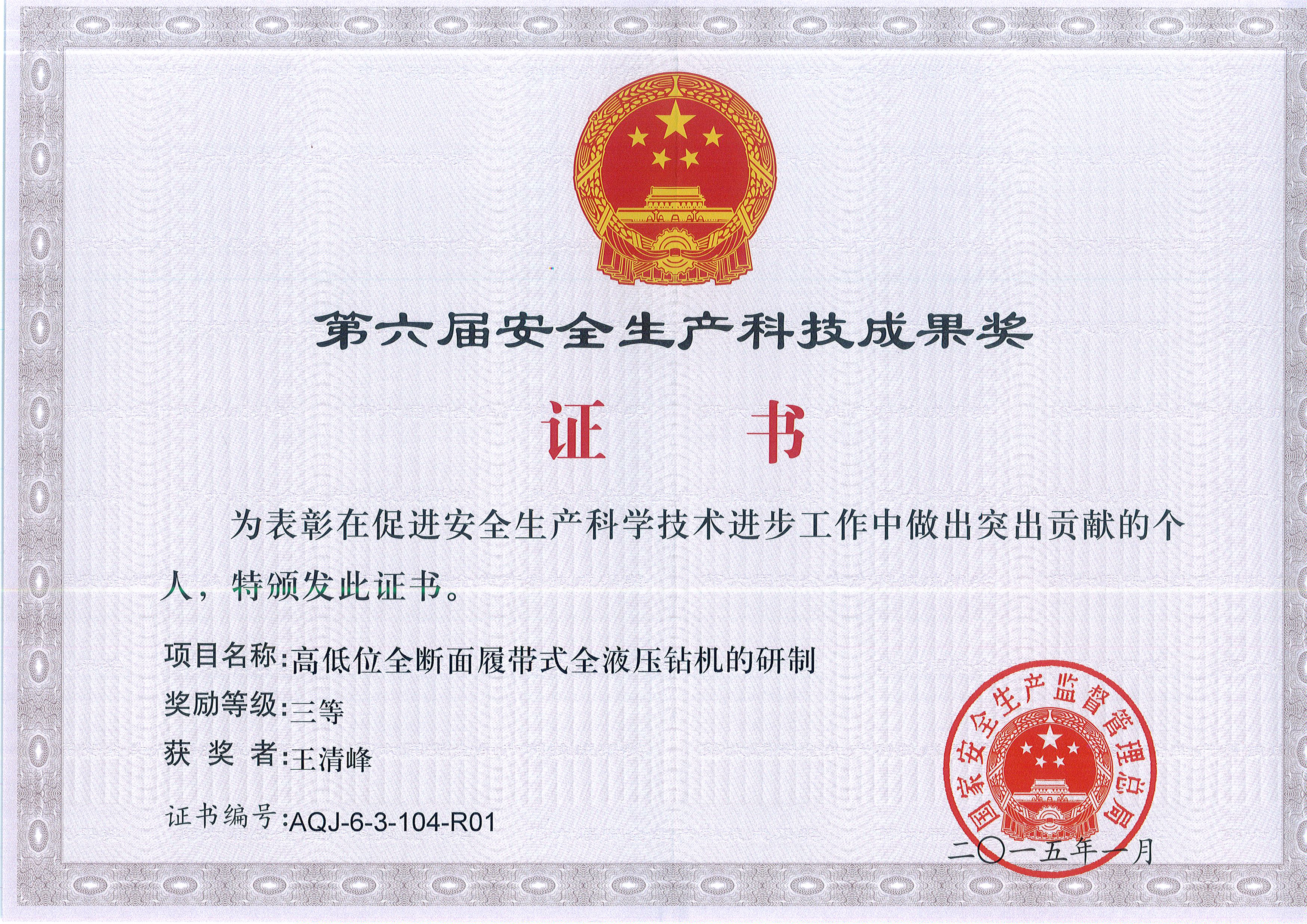 (1)作为主研人员,参加了国家“九五”攻关项目“突出煤层定向长钻孔预抽本煤层瓦斯的研究”的研究。项目成果获得煤炭工业协会科学技术一等奖。