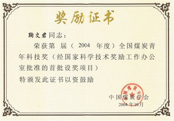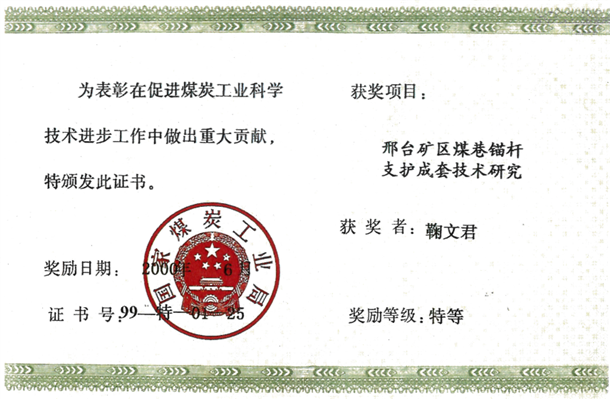 10、铁法矿区锚杆支护体系的建立与实践,中国煤炭工业科学技术奖二等奖,2004,排名4。