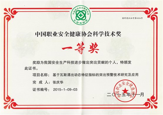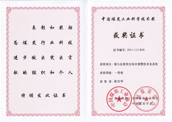 (2)发明了基于过程控制的突出综合监测预警方法,创建了突出危险性逐级预警指标体系和模型,研制了信息自动采集设备和监测预警系统,成果参加了由科技部组织的国家重大科技成果展以及由国家发改委组织的第十四届中国国际高新技术成果交易会,同时国家煤监局将该成果列为首批“四个一批”适用推广技术;
