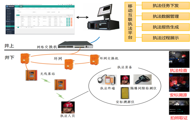 针对矿山安全生产监察执法装备技术水平落后、执法过程标准化程度低、执法信息可信度不高等问题,研究了基于情景感知驱动的移动执法方法、井下设备失爆检测与安标溯源技术与装备、基于移动互联的可穿戴技术及执法终端、井下信息同步可信取证技术及执法系统,为煤矿安全管控云平台提供可信的执法信息,实现精准执法,提高监察执法的高效性、客观性、科学性。