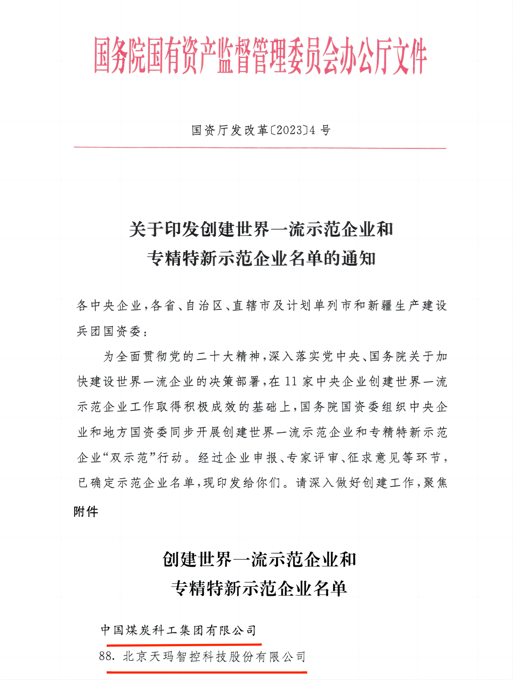 近日,天玛智控成功入选国务院国资委“创建世界一流示范企业和专精特新示范企业”名单,成为煤炭机械行业唯一获此殊荣的企业。