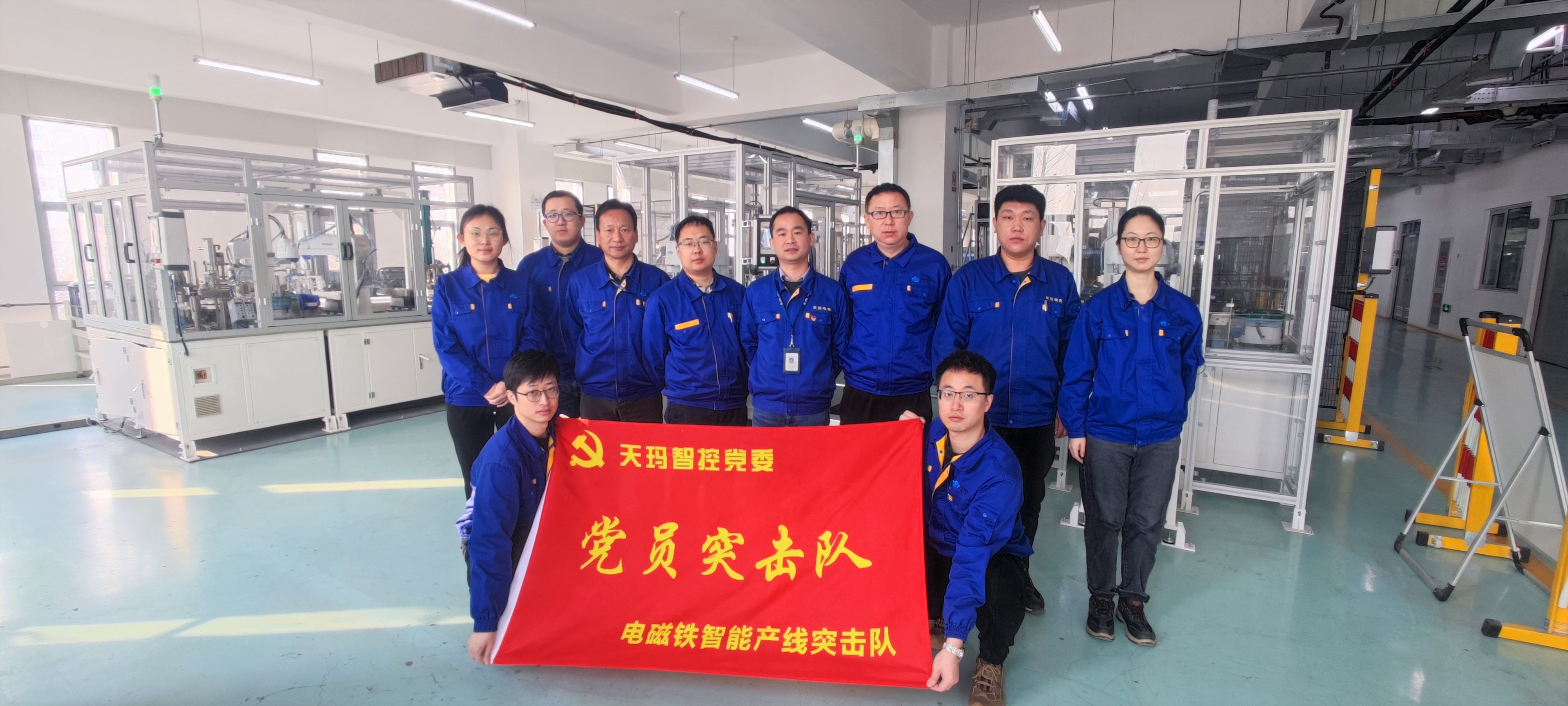 宝剑锋从磨砺出,梅花香自苦寒来。在电磁铁智能产线建设过程中,党员突击队发挥了至关重要的作用。突击队员深入学习贯彻党的二十大精神,以目标为导向,以质量为根本,充分发扬共产党员吃苦耐劳、连续作战的品格,最终提前实现了电磁铁柔性智能装配生产线的建成,为加快推进天玛智控智能工厂建设和高质量发展做出了应有的贡献。