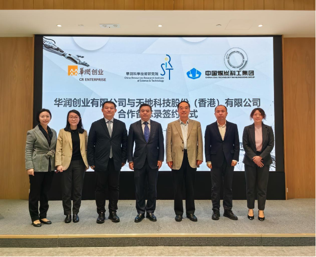 合作备忘录由天地科技股份(香港)有限公司副总经理赵晨、华润创业有限公司副总裁兼华润科学技术研究院常务副院长支喆签署。